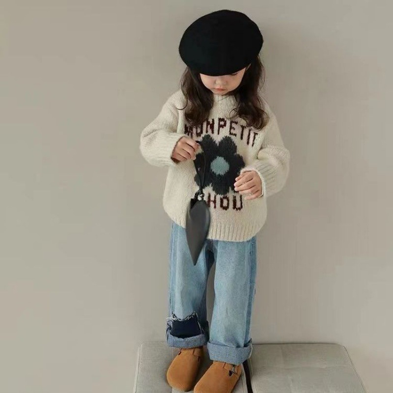 Children's Clothing Infant Toddler Spring And Autumn Floral Denim Suspender Pants